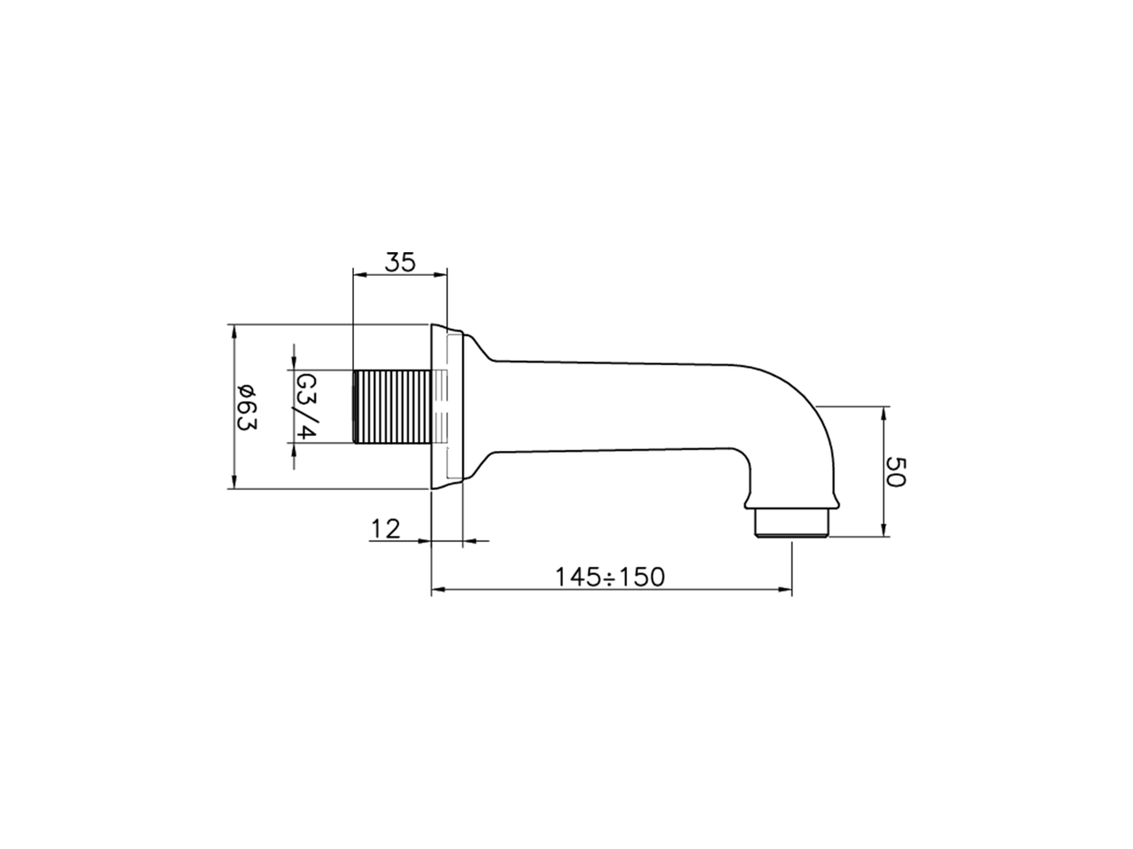 Bocca di erogazione,vasca a muro,attacco 3/4" M