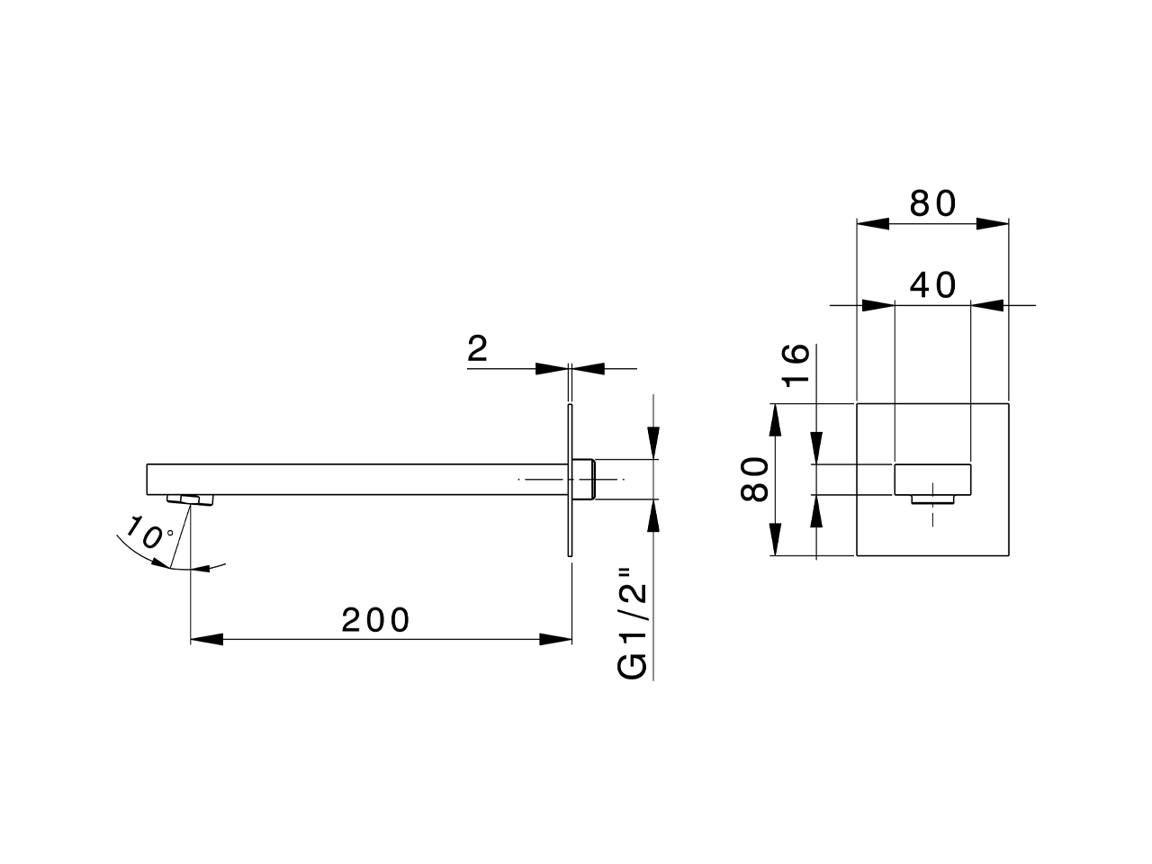 Bocca di erogazione,L.170 mm,attacco 1/2" M