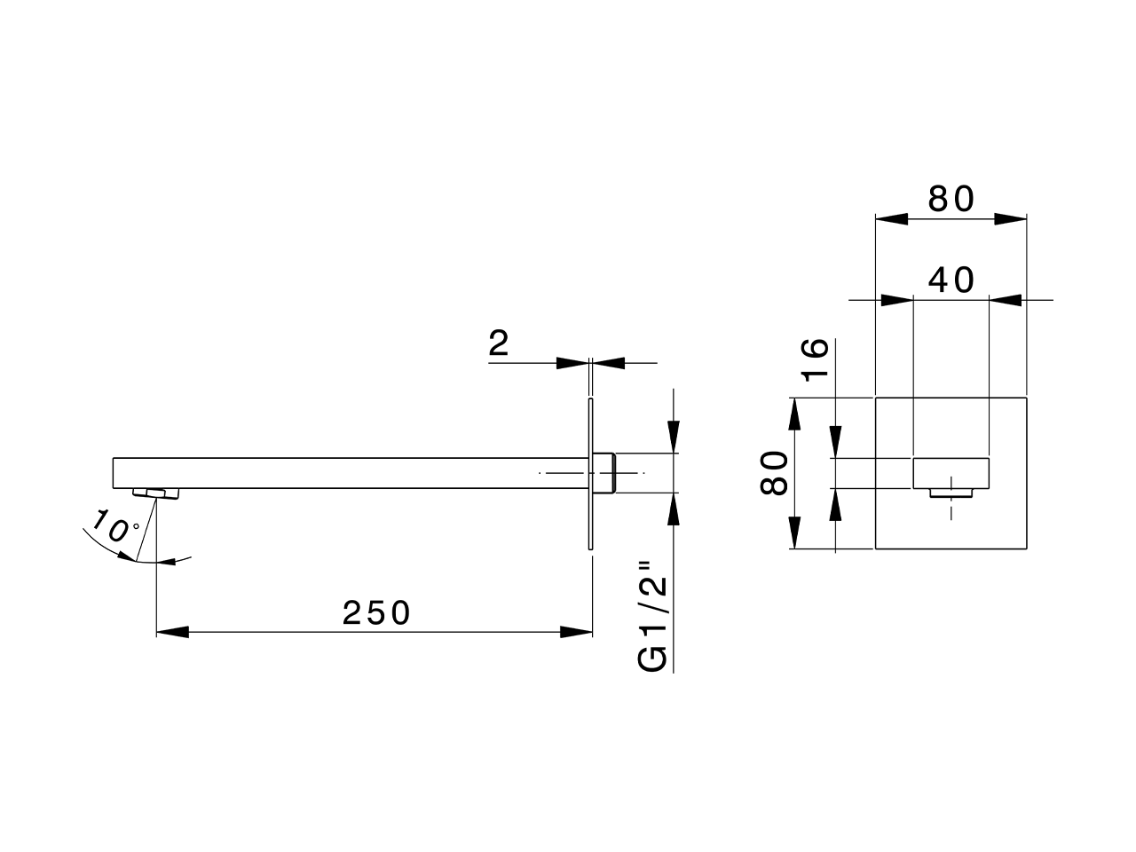 Bocca di erogazione,L.250 mm,attacco 1/2" M