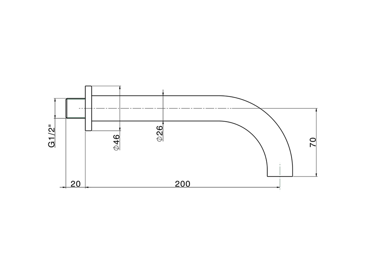 Bocca di erogazione,L.200 mm,attacco 1/2" M