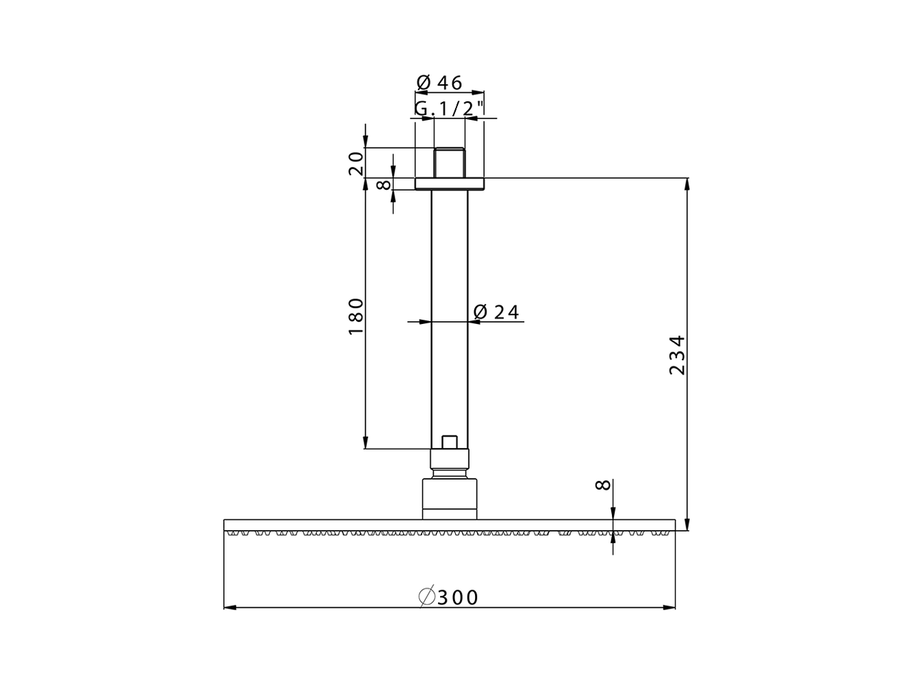 Braccio doccia con soffione,soffione tondo D.300 mm sp.8 mm in OTTONE