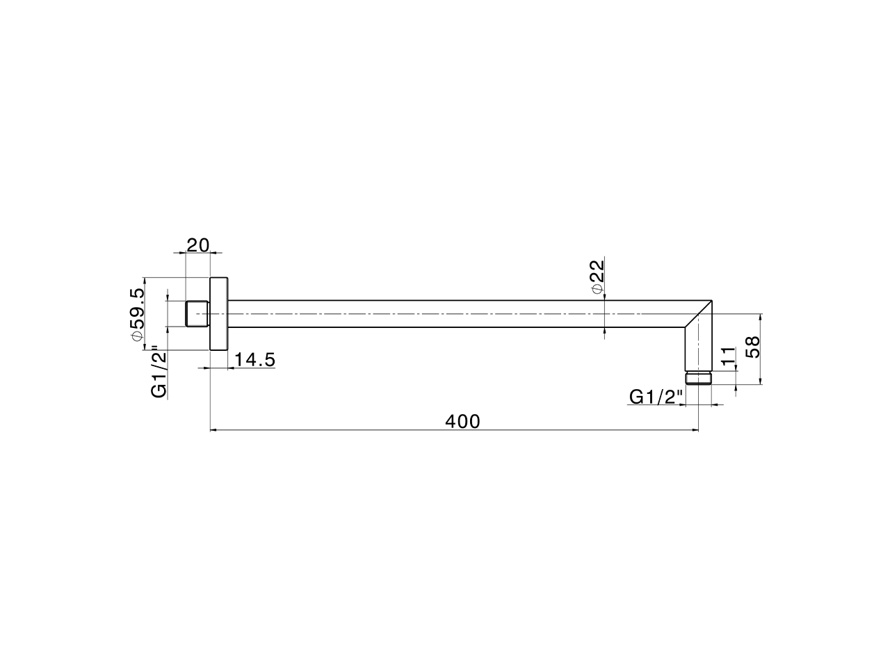 Braccio doccia,L.400 mm D.20,5 mm,Ottone
