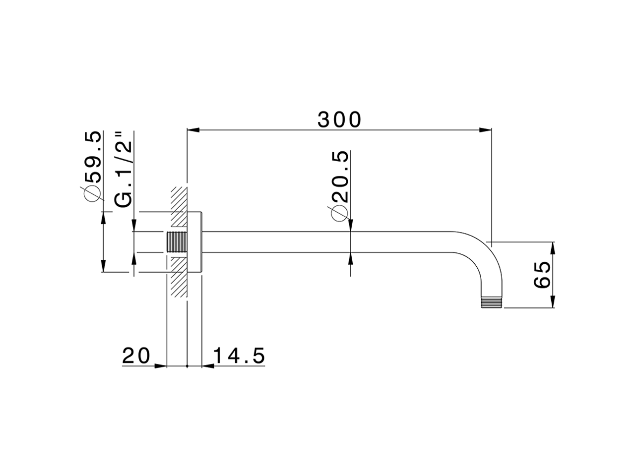 Braccio doccia,L.300 mm D.20,5,acciaio inox