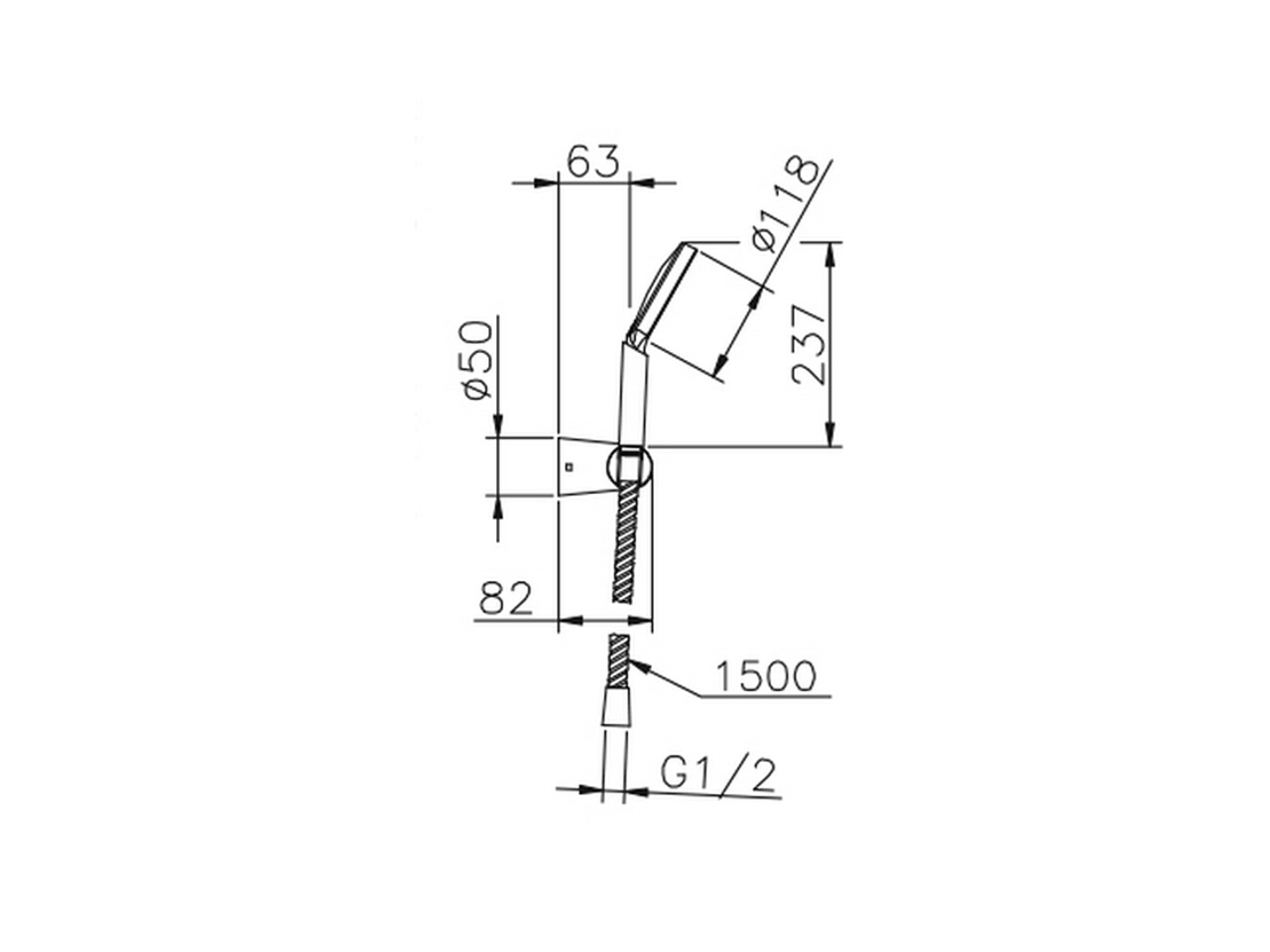 Completo doccia duplex,supporto doccetta snodato murale,doccetta monogetto D.110 mm in ABS,flex Ottone 150 cm