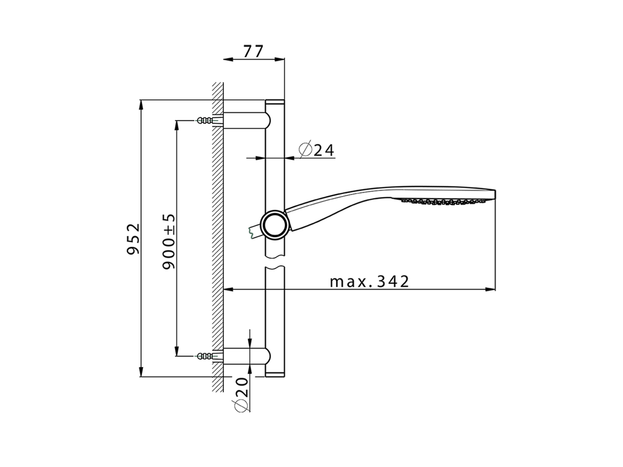 Completo doccia saliscendi,asta 90 cm ottone Ø24 con supp.scorrevole Ottone,doccetta monogetto Emotion D.130 mm in ABS,flessibile liscio SUPREME 150 cm