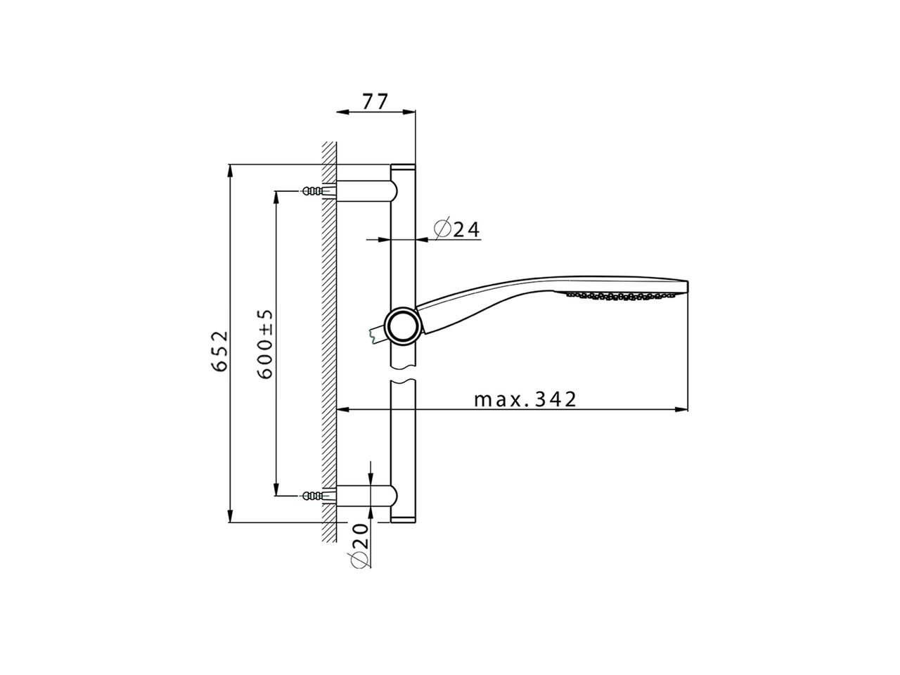 Completo doccia saliscendi,asta 60 cm ottone Ø24 con supp.scorrevole Ottone,doccetta monogetto Emotion D.130 mm in ABS,flessibile liscio SUPREME 150 cm