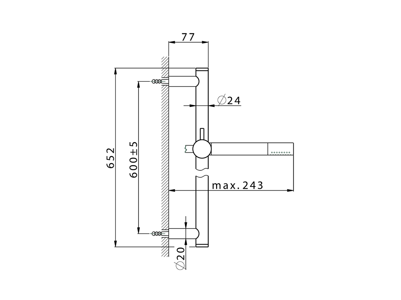 Completo doccia saliscendi,asta 60 cm ottone Ø24 con supp.scorrevole Ottone,doccetta monogetto minimale D.24mm in Ottone,flessibile liscio SUPREME 150 cm