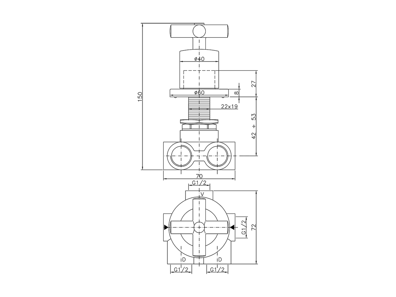 Deviatore incasso 3 uscite,uscite 1/2" F
