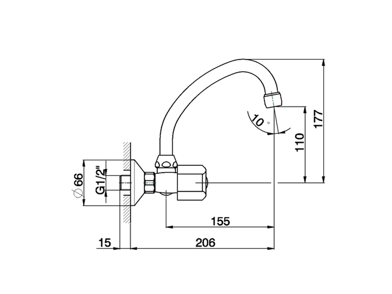 Miscelatore lavello a parete,bocca girevole,senza maniglie