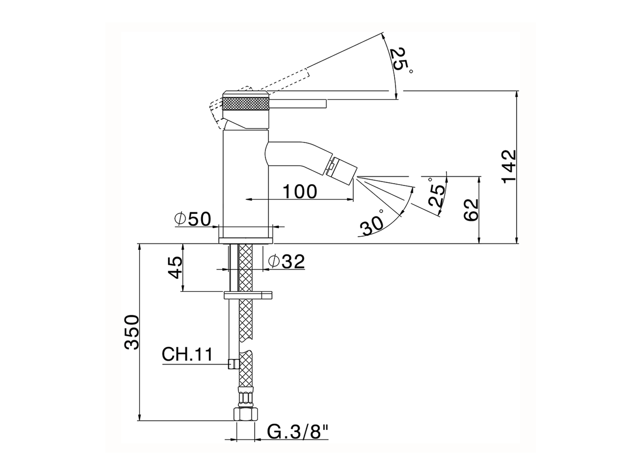 Miscelatore monocomando bidet,senza scarico automatico,flex inox G.3/8"