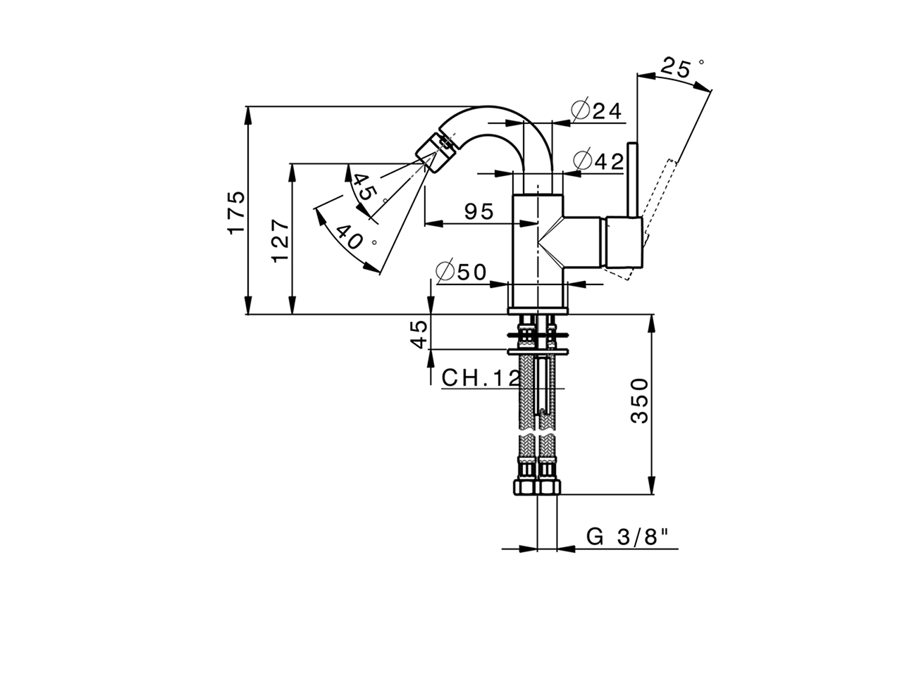 Miscelatore monocomando bidet EnergySave,bocca girevole,senza scarico,flex inox G.3/8"
