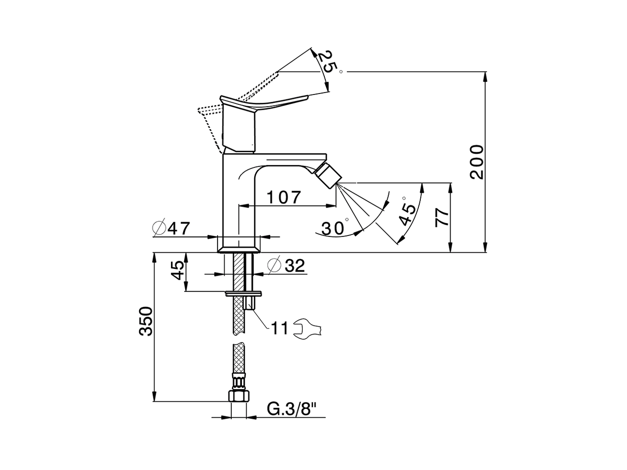 Miscelatore monocomando bidet,senza scarico automatico,flex inox G.3/8"
