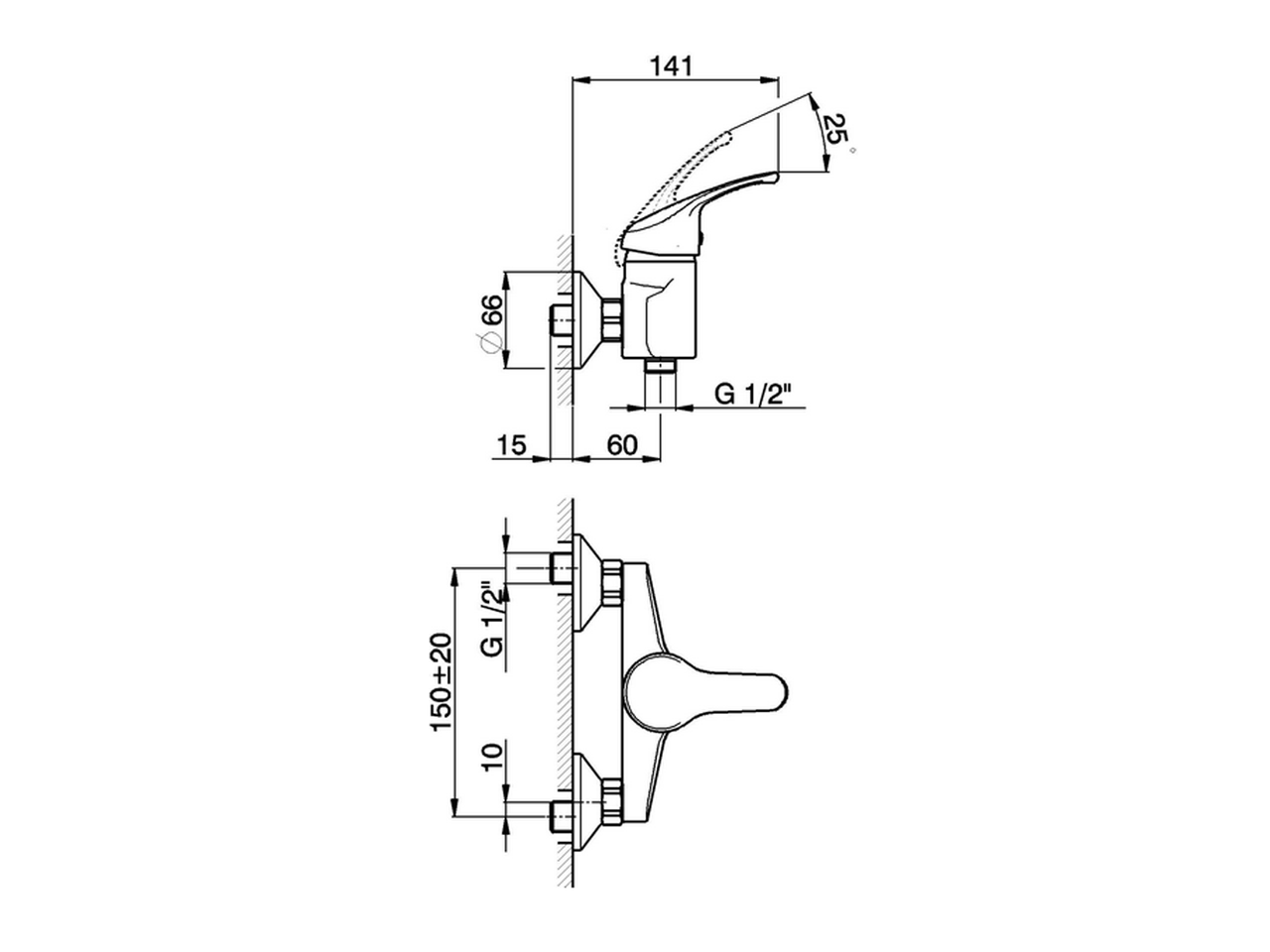 Miscelatore monocomando doccia,senza completo doccia,attacco per flessibile 1/2" M