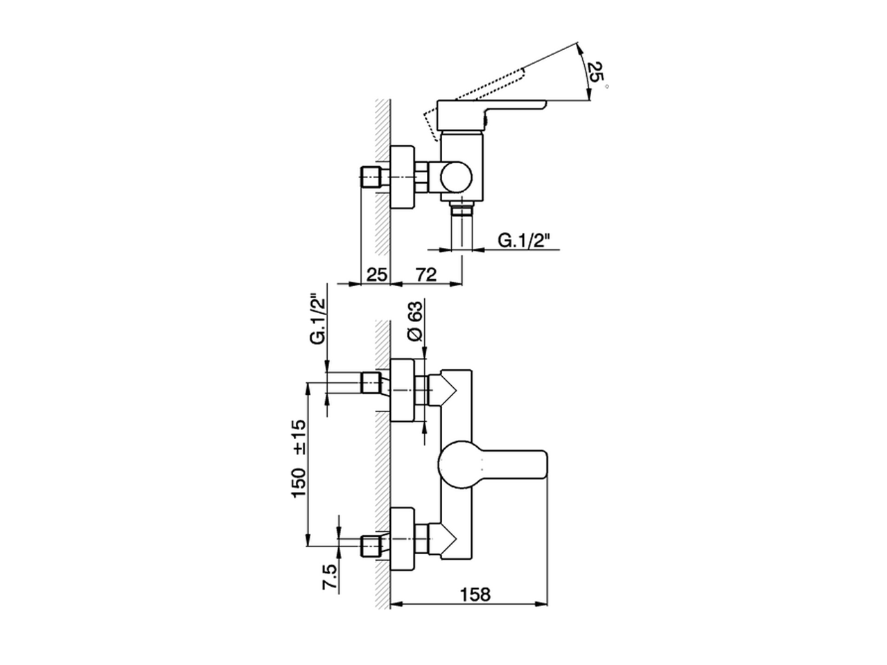 Miscelatore monocomando doccia,senza completo doccia,attacco per flessibile 1/2" M