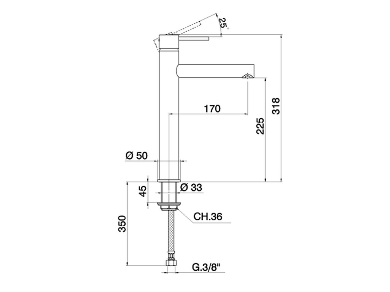 Miscelatore monocomando lavabo alto,senza scarico automatico,flex inox G.3/8"