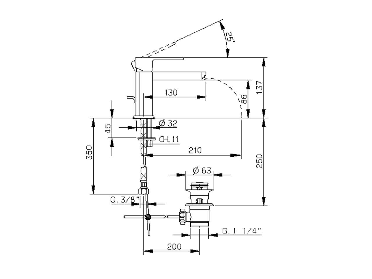 Miscelatore monocomando lavabo,con scarico automatico 1"1/4,flex inox G.3/8",inserto bocca disponibile in finitura cromo o fumé