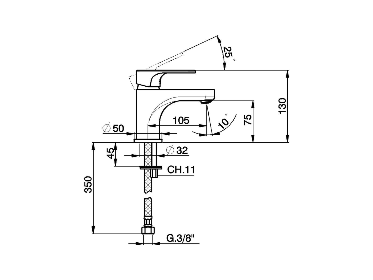 Miscelatore monocomando lavabo EnergySave,senza scarico automatico,flex inox G.3/8"