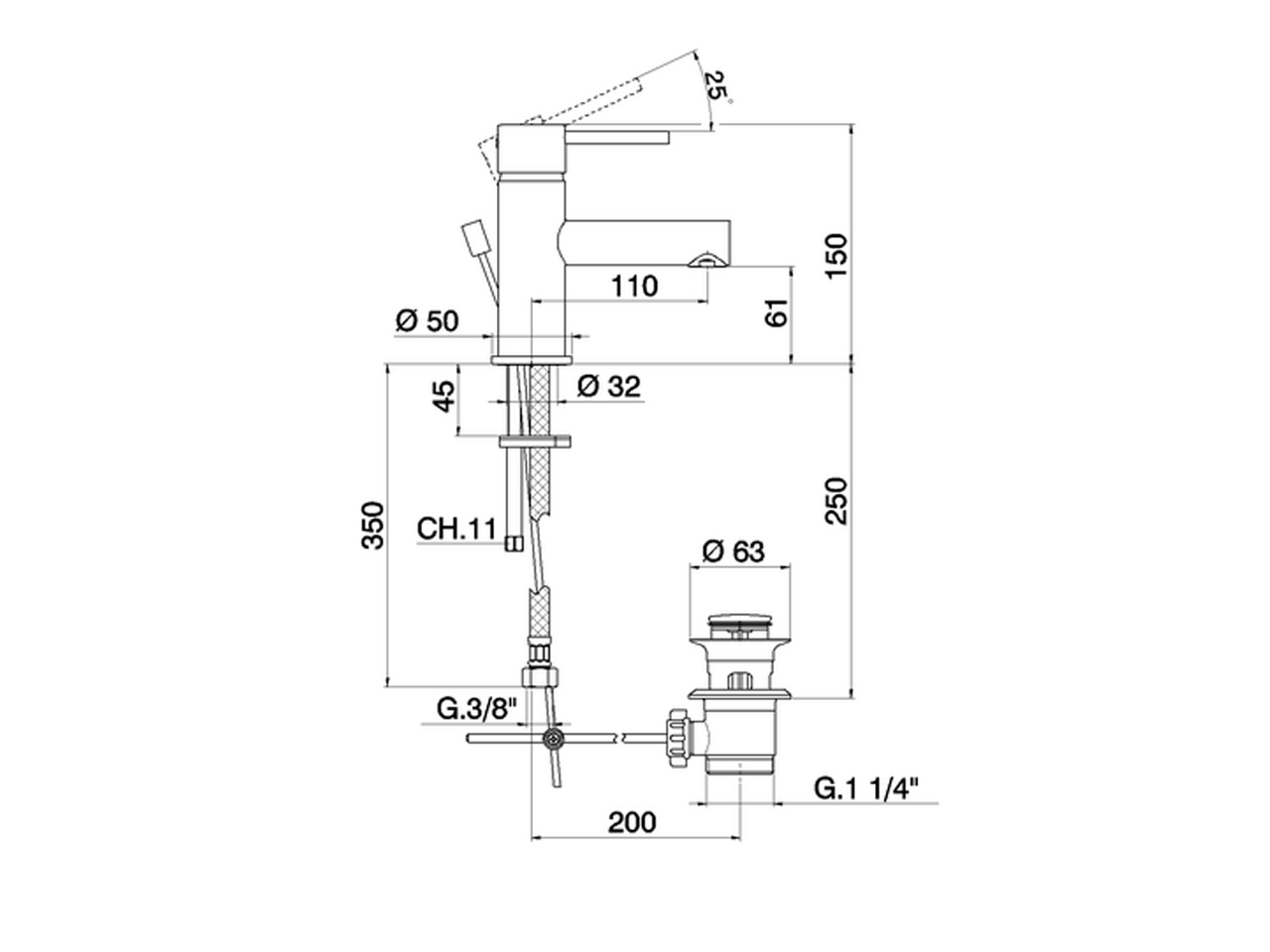 Miscelatore monocomando lavabo EnergySave,con scarico automatico 1"1/4,flex inox G.3/8"