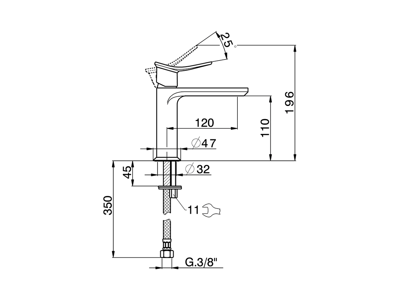 Miscelatore monocomando lavabo,senza scarico automatico,flex inox G.3/8"