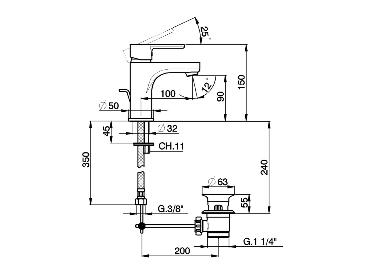 Miscelatore monocomando lavabo large EnergySave,con scarico automatico 1"1/4,flex inox G.3/8"