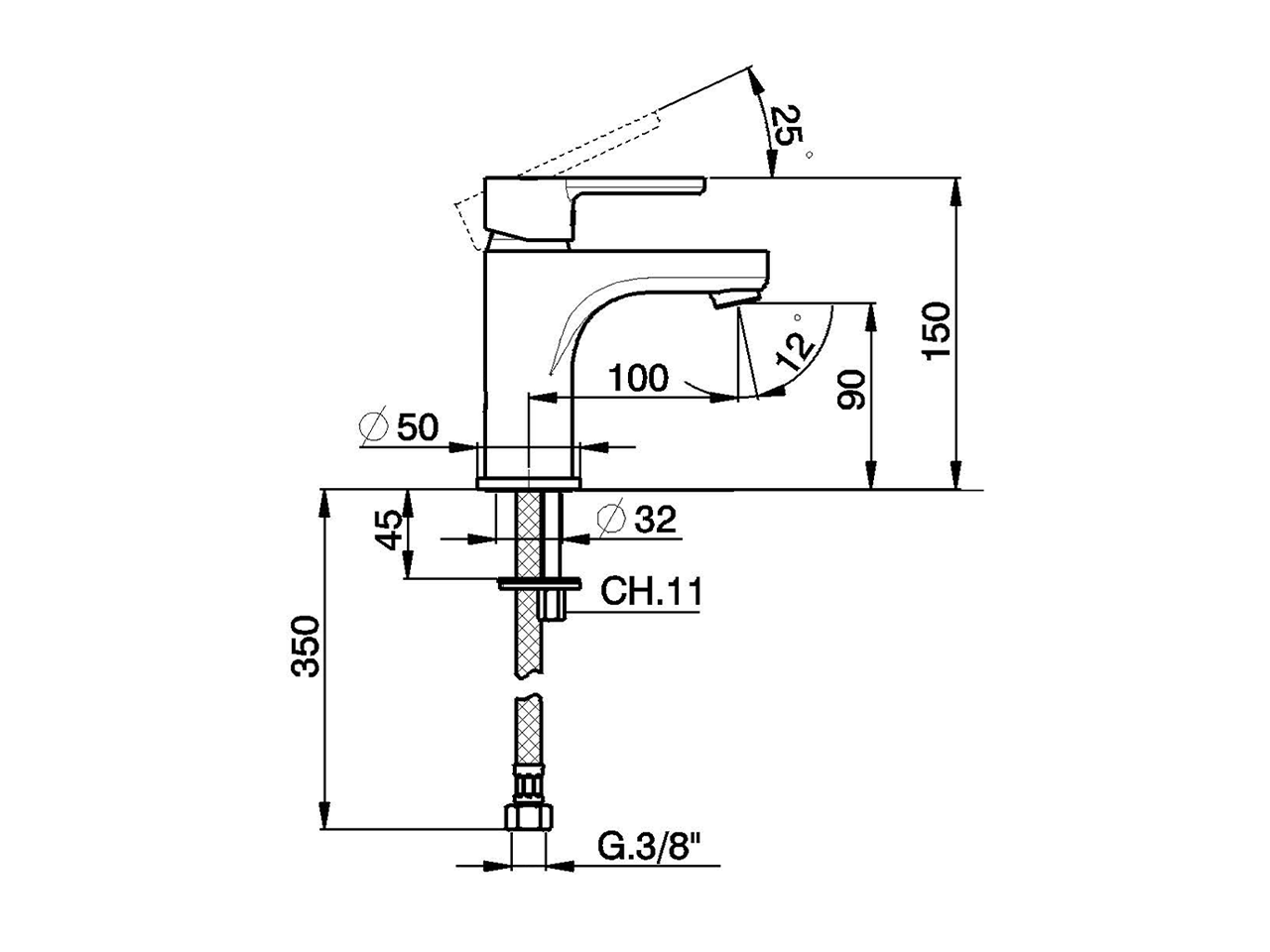 Miscelatore monocomando lavabo large EnergySave,senza scarico automatico,flex inox G.3/8"