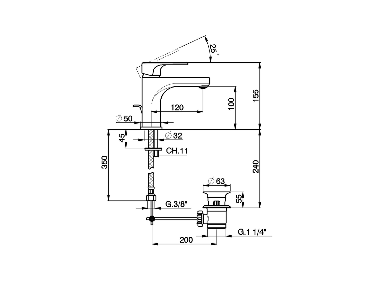 Miscelatore monocomando lavabo large EnergySave,con scarico automatico 1"1/4,flex inox G.3/8"