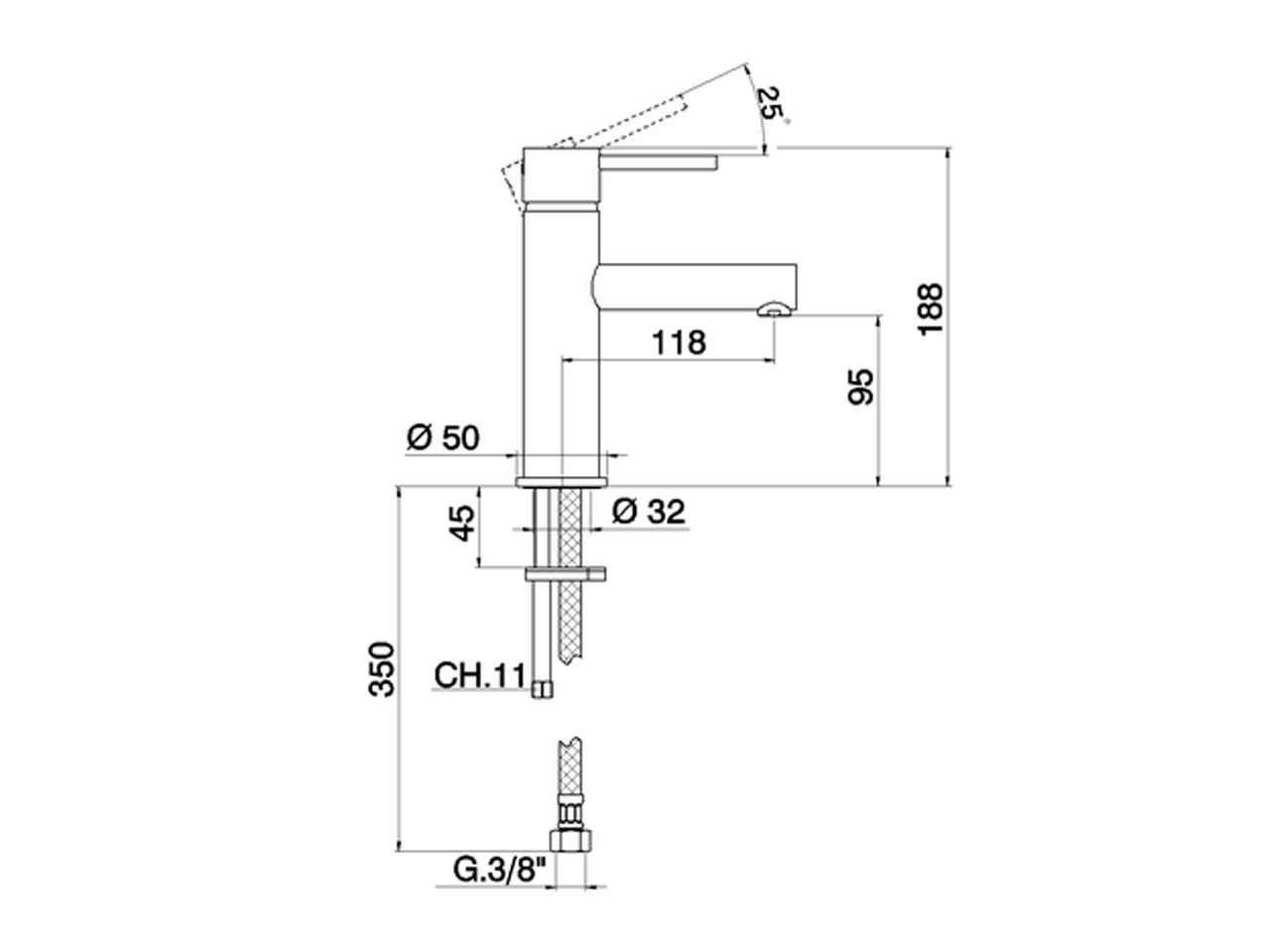 Miscelatore monocomando lavabo large,senza scarico automatico,flex inox G.3/8"