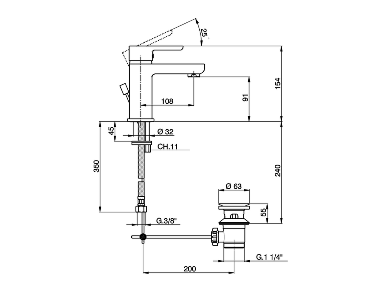Miscelatore monocomando lavabo,con scarico automatico 1"1/4,flex inox G.3/8"