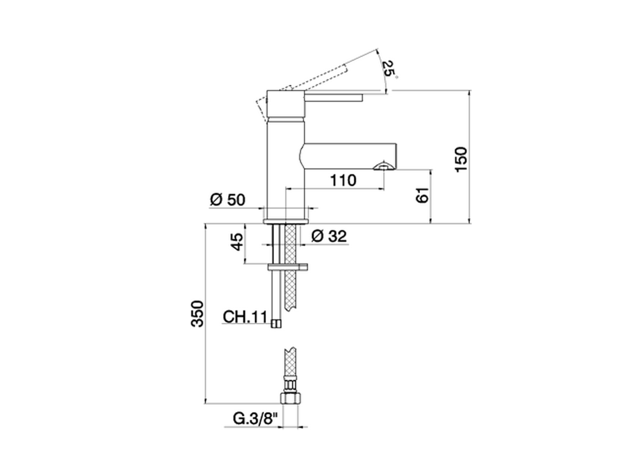 Miscelatore monocomando lavabo,senza scarico automatico,flex inox G.3/8"