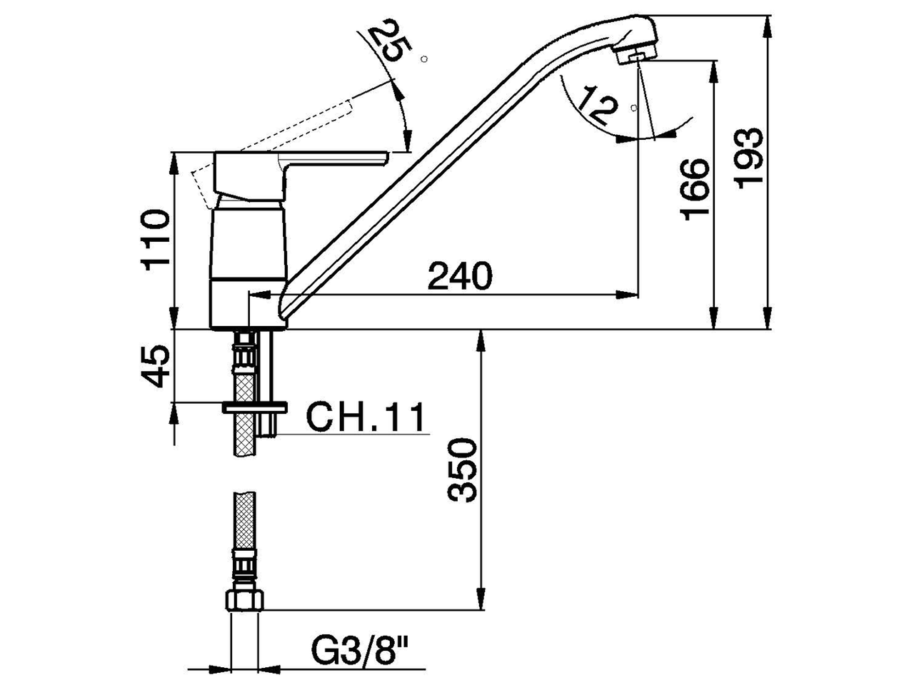Miscelatore monocomando lavello EnergySave,bocca girevole,flex inox G.3/8"