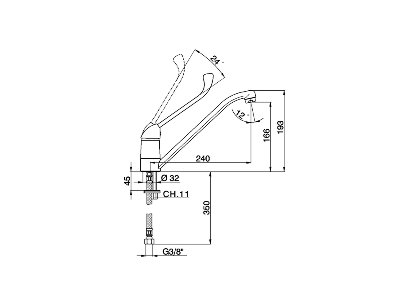 Miscelatore monocomando lavello,bocca girevole,leva clinica,flex inox G.3/8"