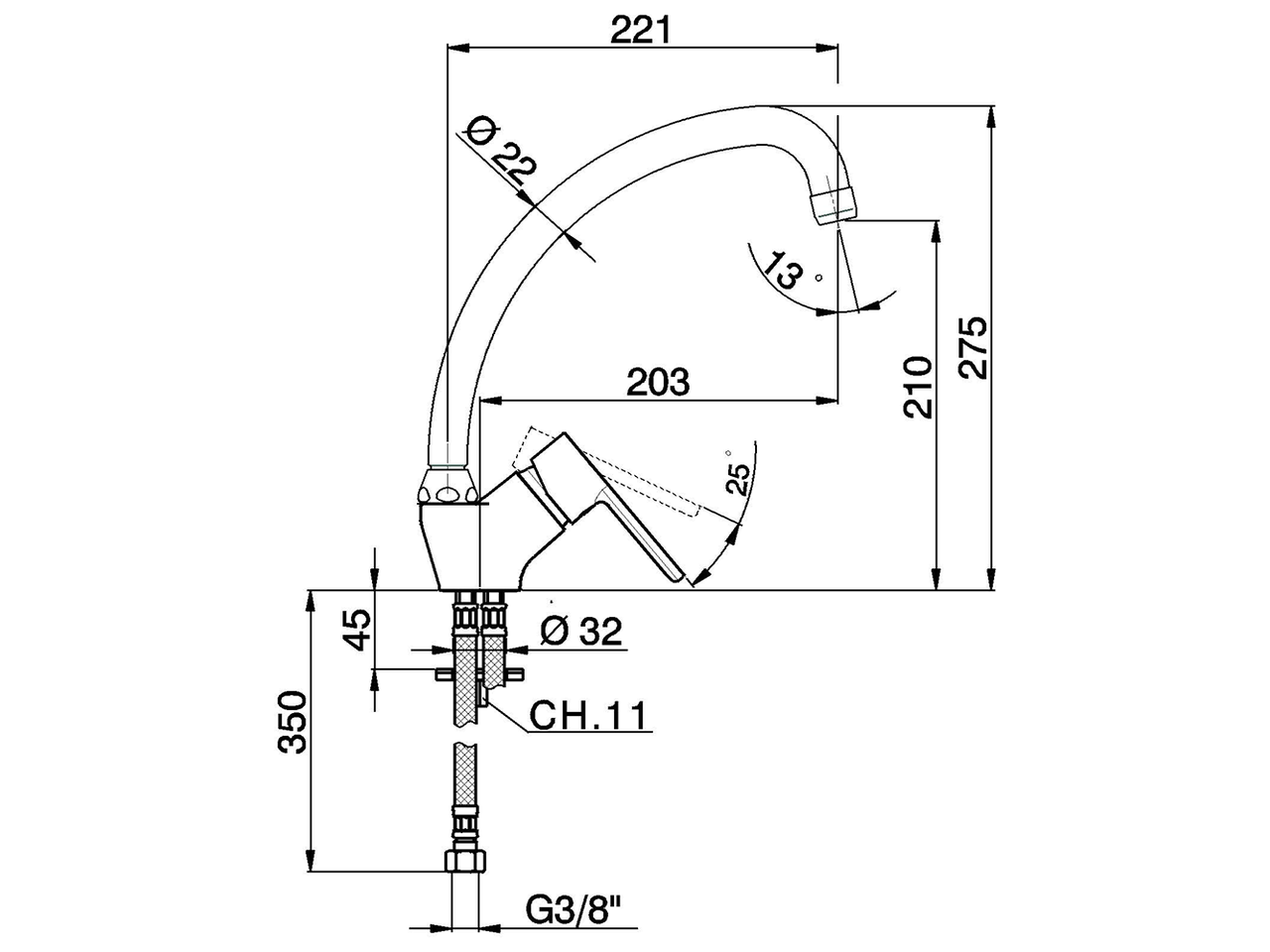 Miscelatore monocomando lavello,bocca girevole,flex inox G.3/8"