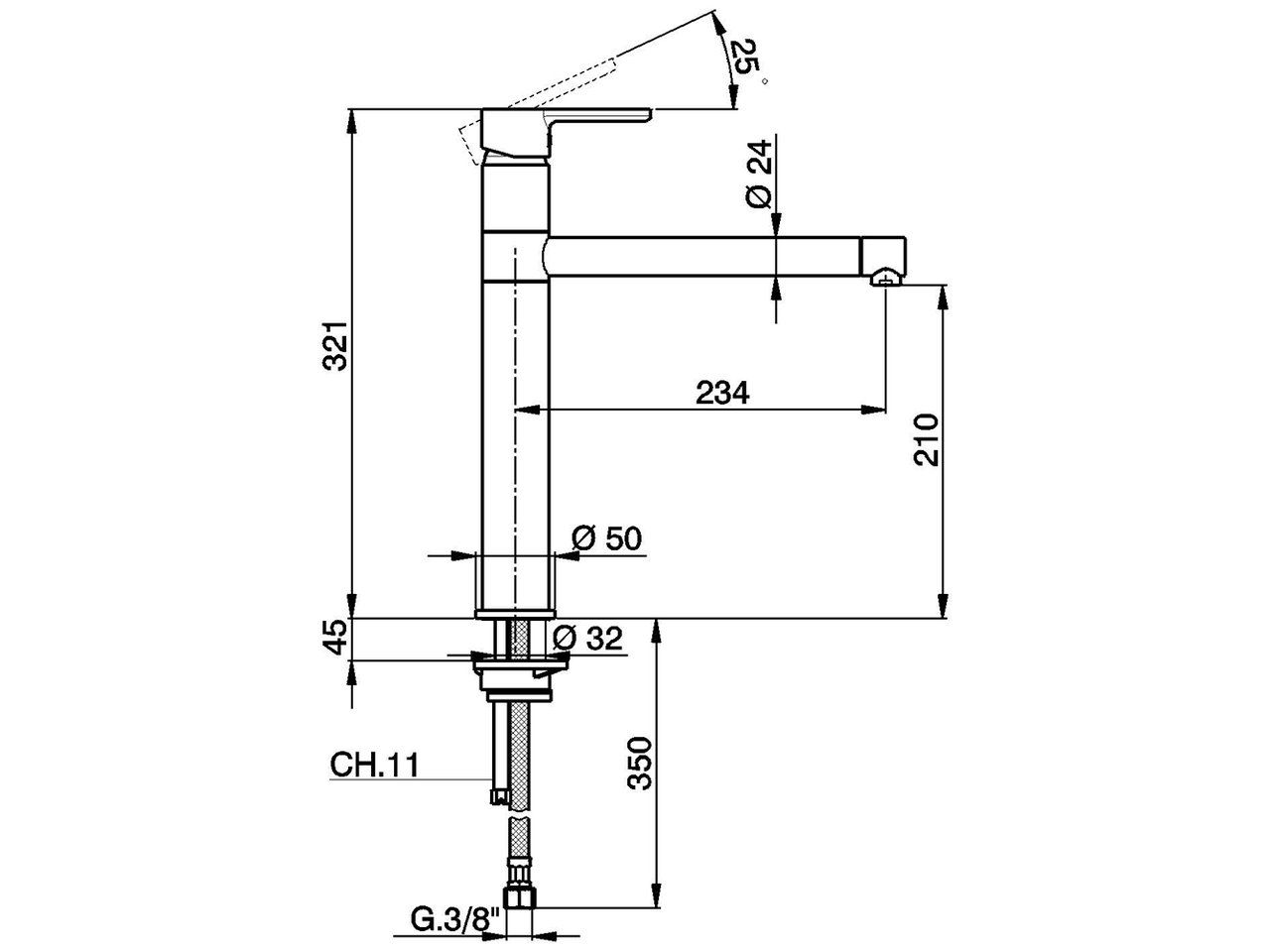 Miscelatore monocomando lavello,bocca girevole,flex inox G.3/8"