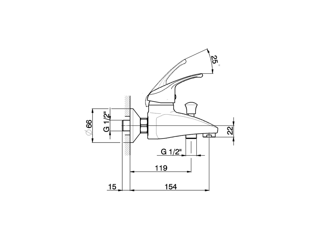 Miscelatore monocomando vasca,senza completo doccia,attacco per flessibile 1/2" M