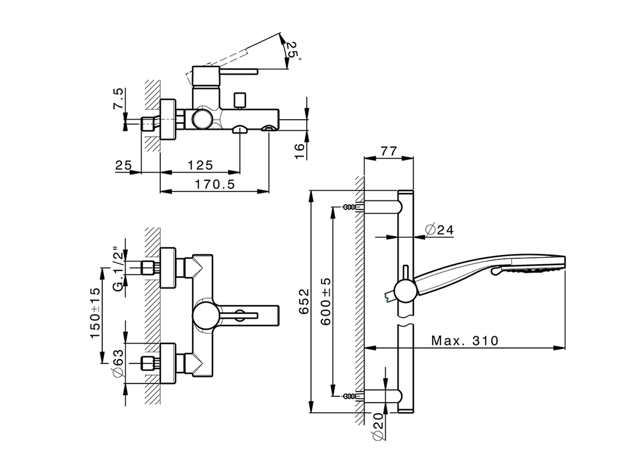 Miscelatore monocomando vasca completo NUOVA KIRUNA_K2000060