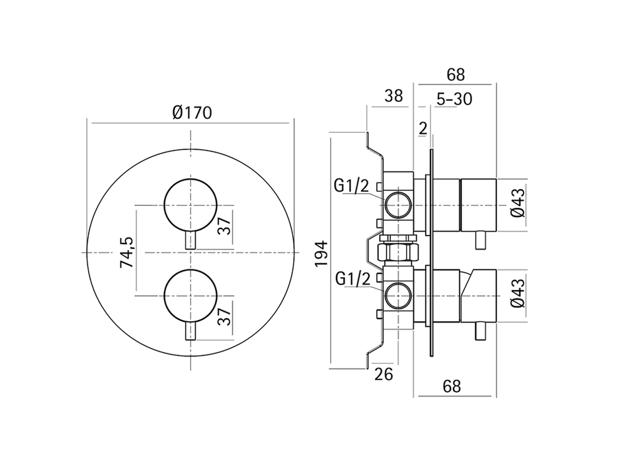 Miscelatore monocomando vasca-doccia incasso LYNOX_LX000213
