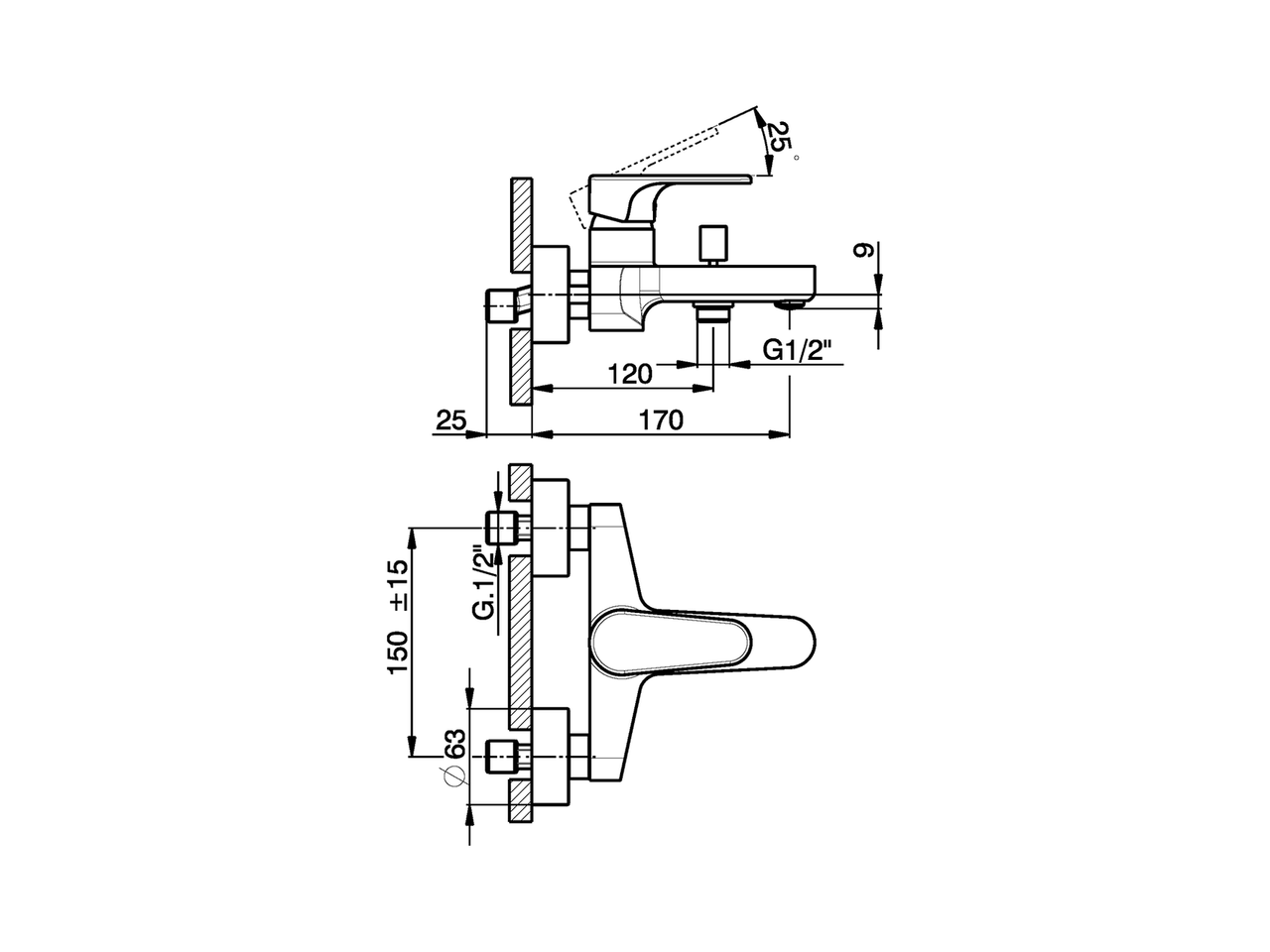 Miscelatore monocomando vasca,senza completo doccia,attacco per flessibile 1/2" M