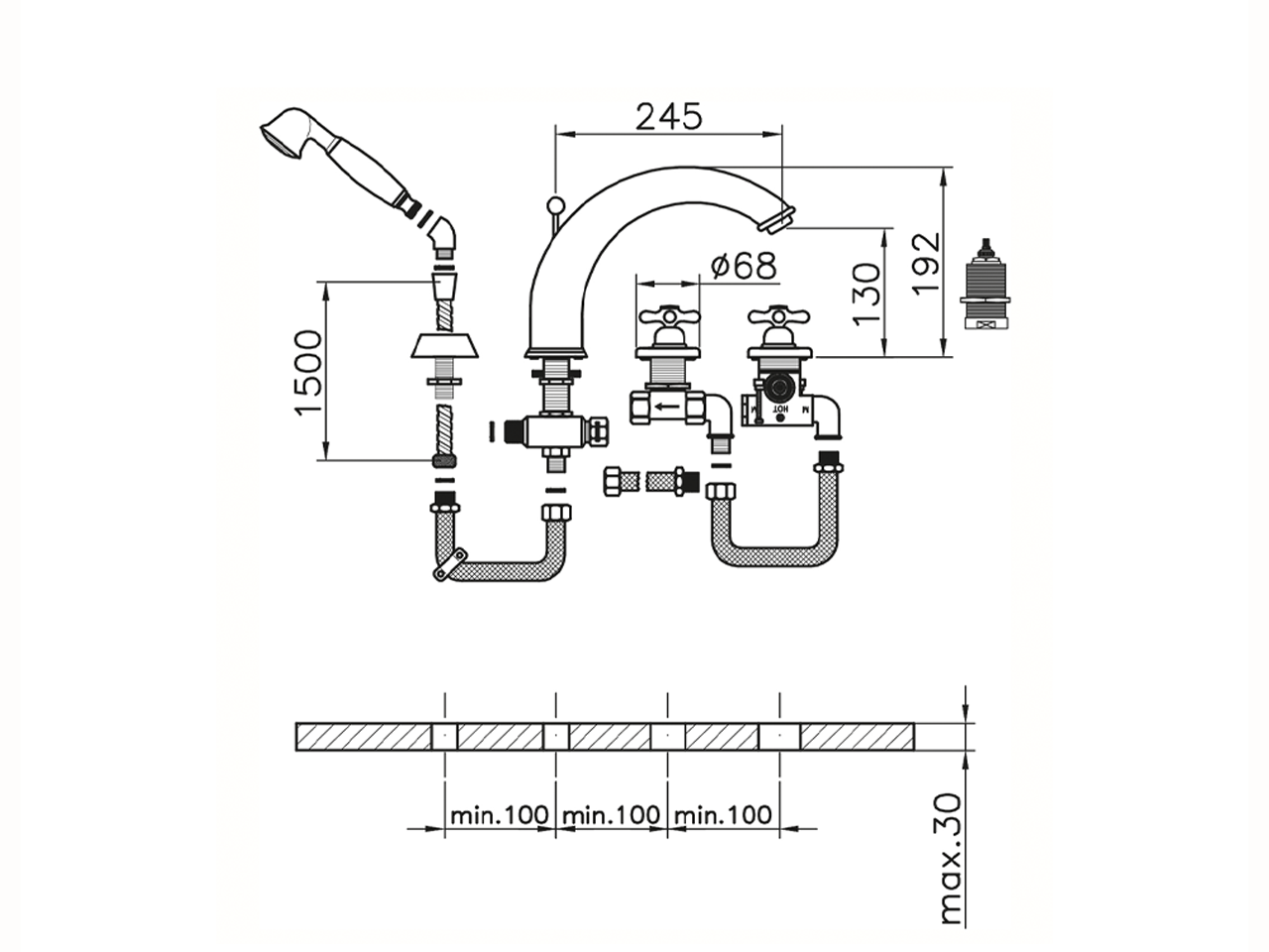 Miscelatore termostatico bordo vasca 4 fori CROISETTE_CST76010