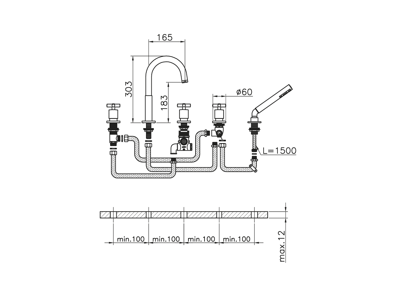 Miscelatore termostatico bordo vasca 5 fori SUITE_SUT78010