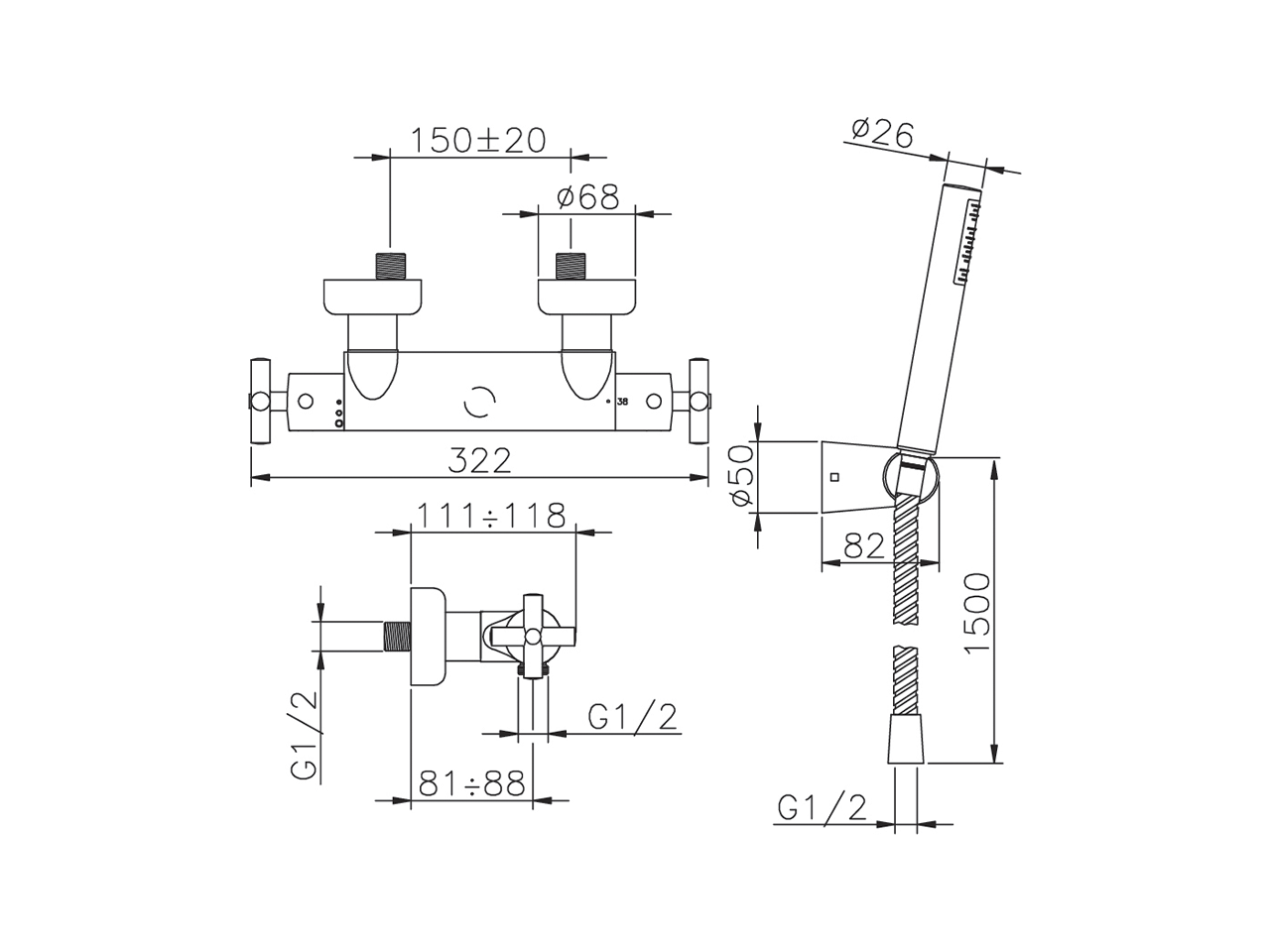 Miscelatore termostatico doccia completo SUITE_SUD01010