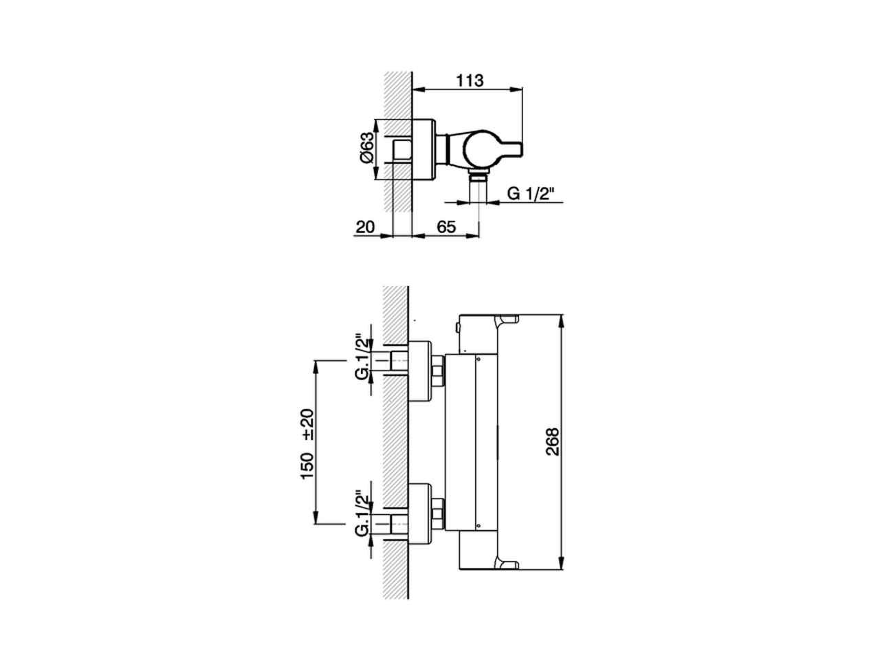 Miscelatore termostatico doccia,senza completo doccia,attacco per flessibile 1/2" M