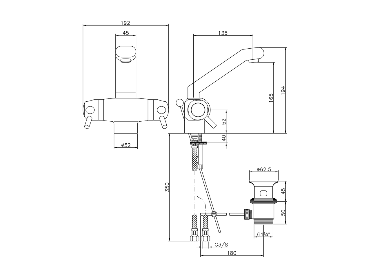 Miscelatore termostatico lavabo,con scarico 1"1/4,flex inox G.3/8"