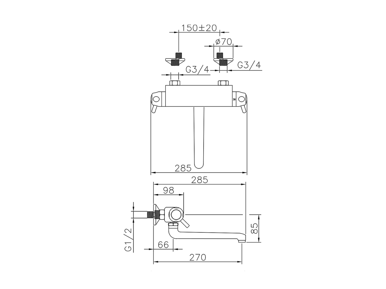 Miscelatore termostatico lavello a parete THERMO_CPT70010