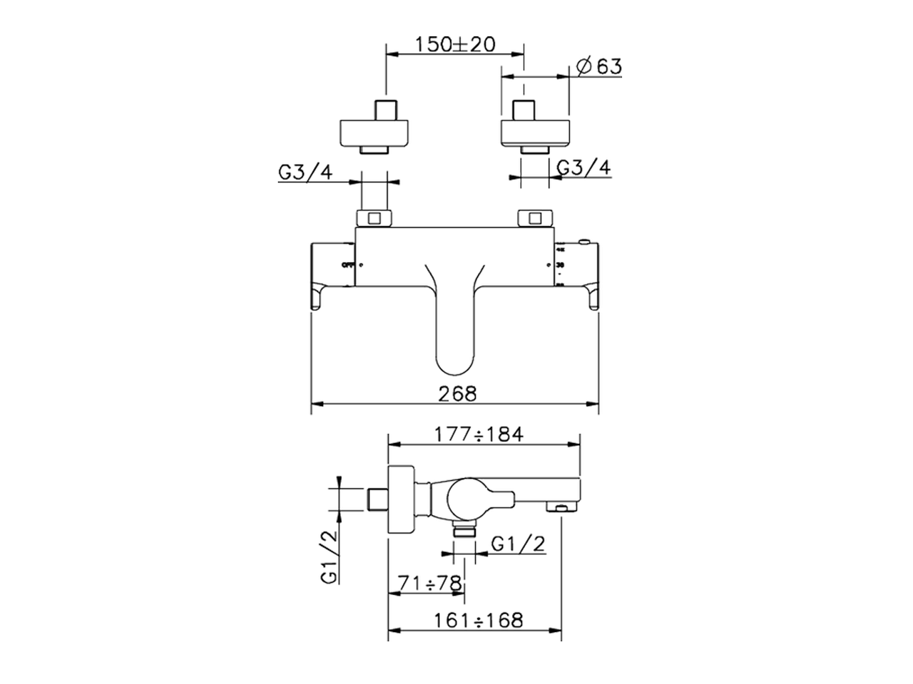 Miscelatore termostatico vasca,senza completo doccia,attacco per flessibile 1/2" M