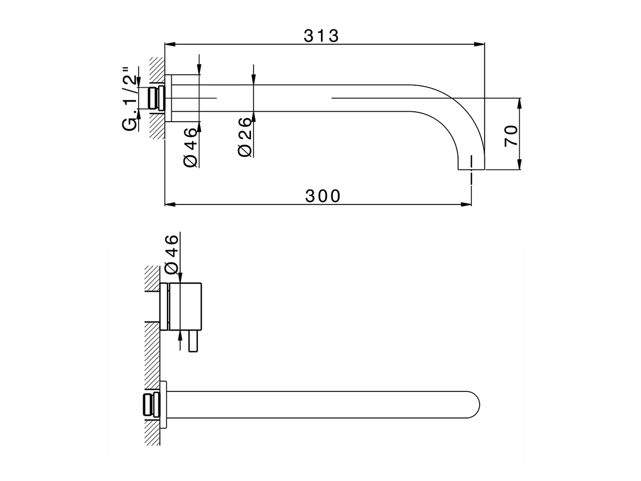 Parte esterna lavabo a parete,senza parte incasso,bocca L.300 mm,per art.