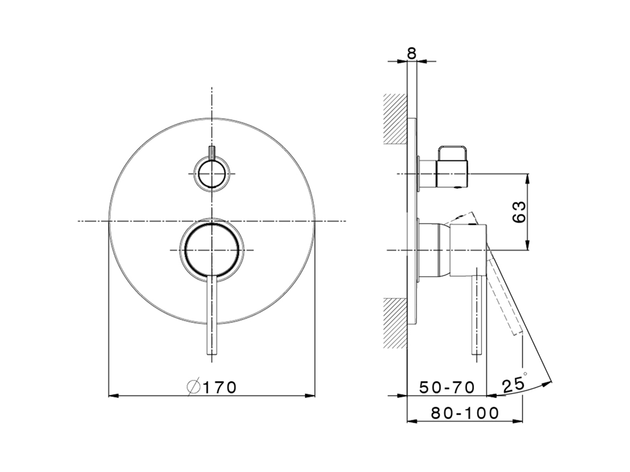Parte esterna monocomando incasso 2 uscite TRATTO EVO_TV002300