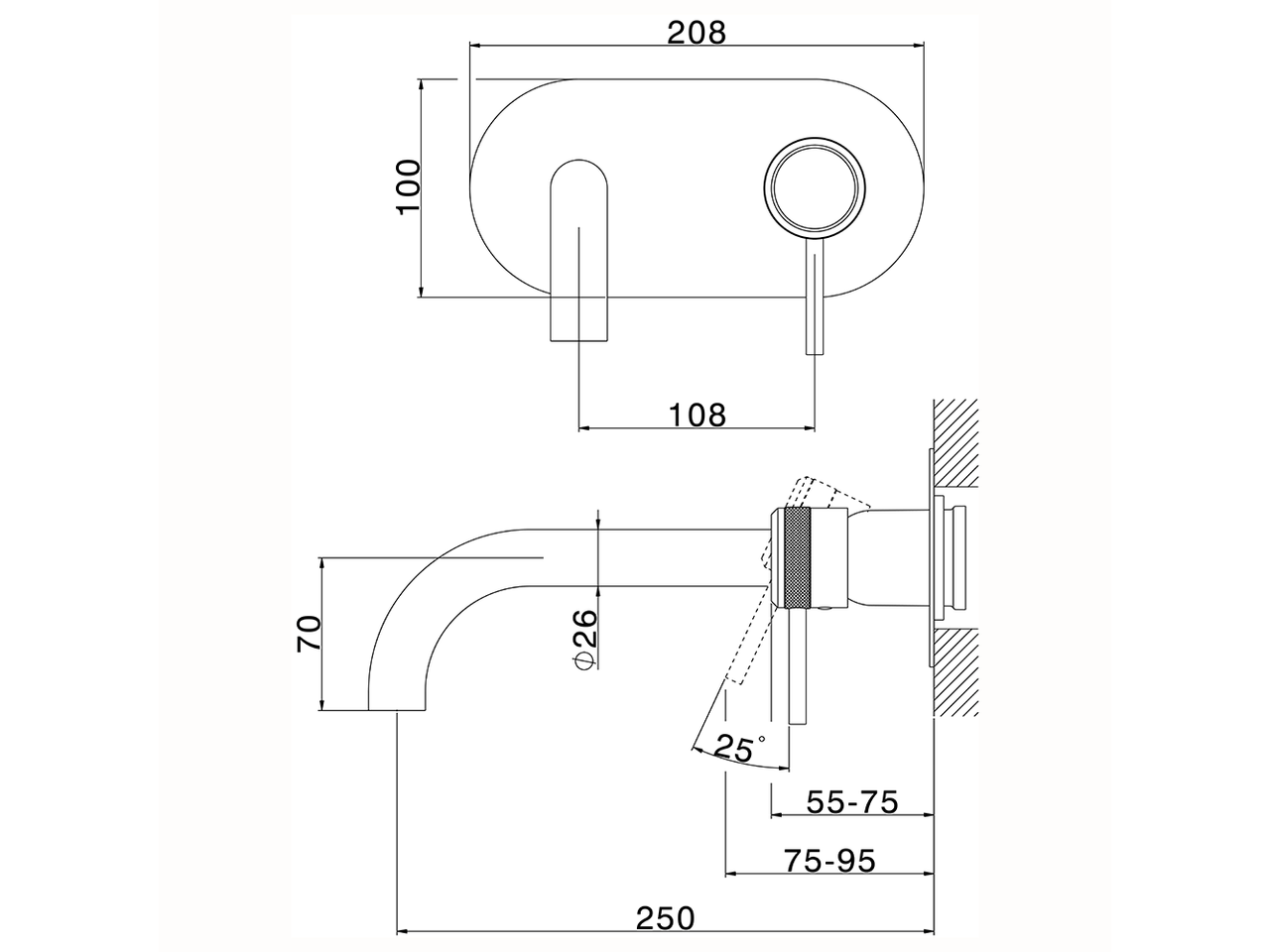 Parte esterna monocomando lavabo a parete,senza parte incasso,bocca L.250 mm,per art.