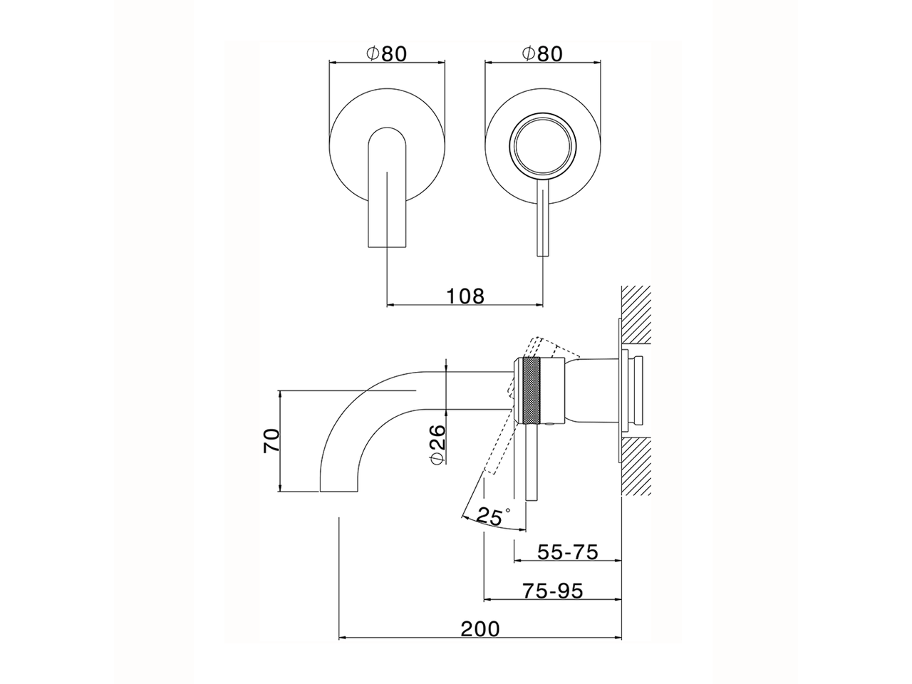 Parte esterna monocomando lavabo a parete,senza parte incasso,bocca L.200 mm,per art.