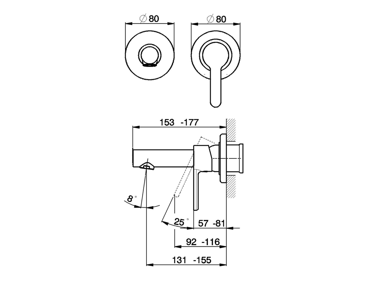 Parte esterna monocomando lavabo a parete,senza parte incasso,bocca L.150 mm,per art.