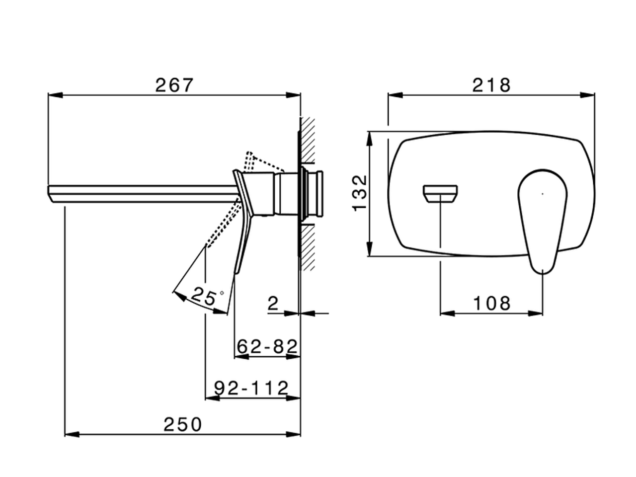 Parte esterna monocomando lavabo a parete,senza parte incasso,bocca L.250 mm,per art.